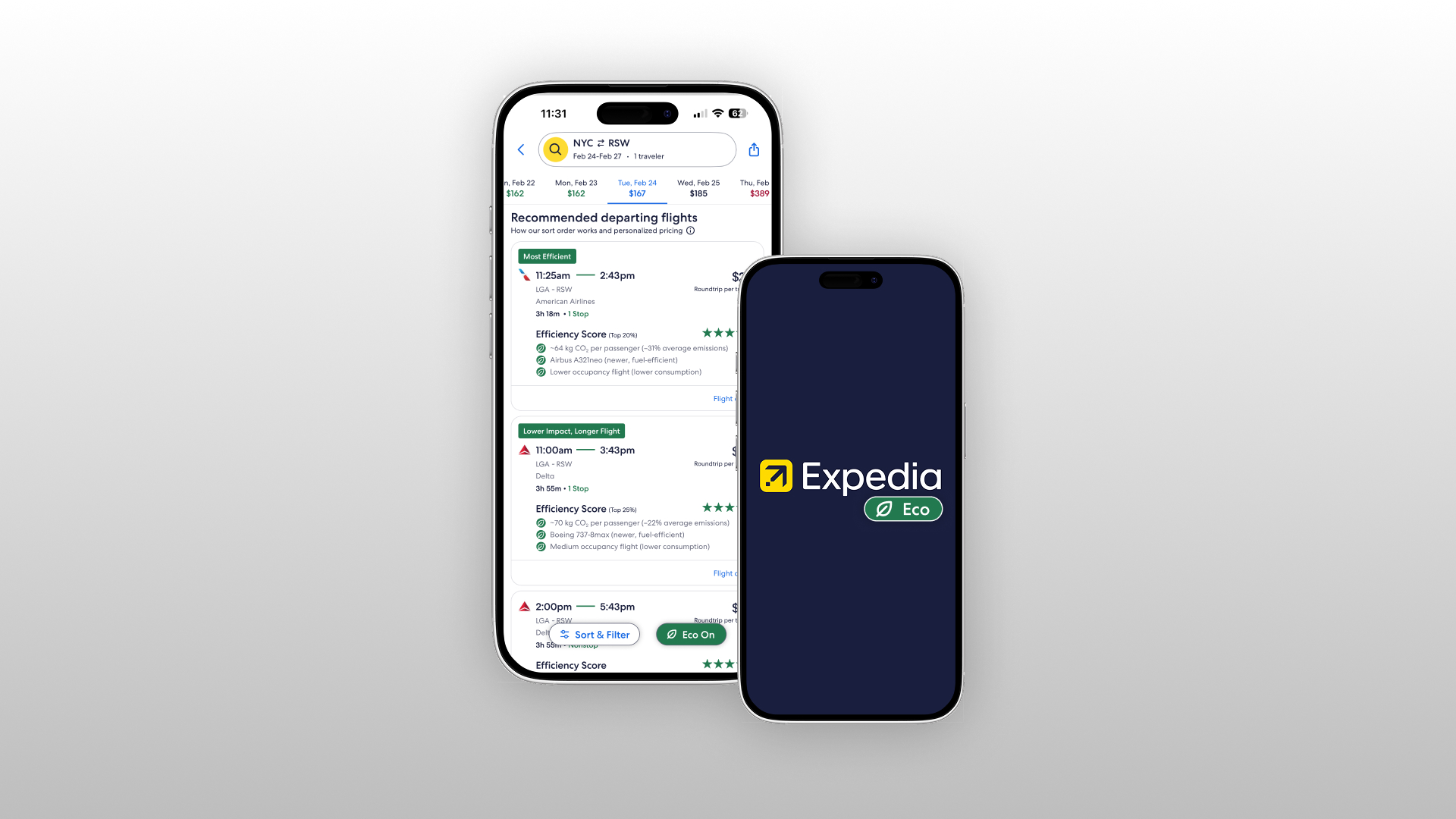 speculative feature design for expedia, focused on creating a climate-positive improvement to the service. eco mode makes climate impact visible to users when making important travel decisions.