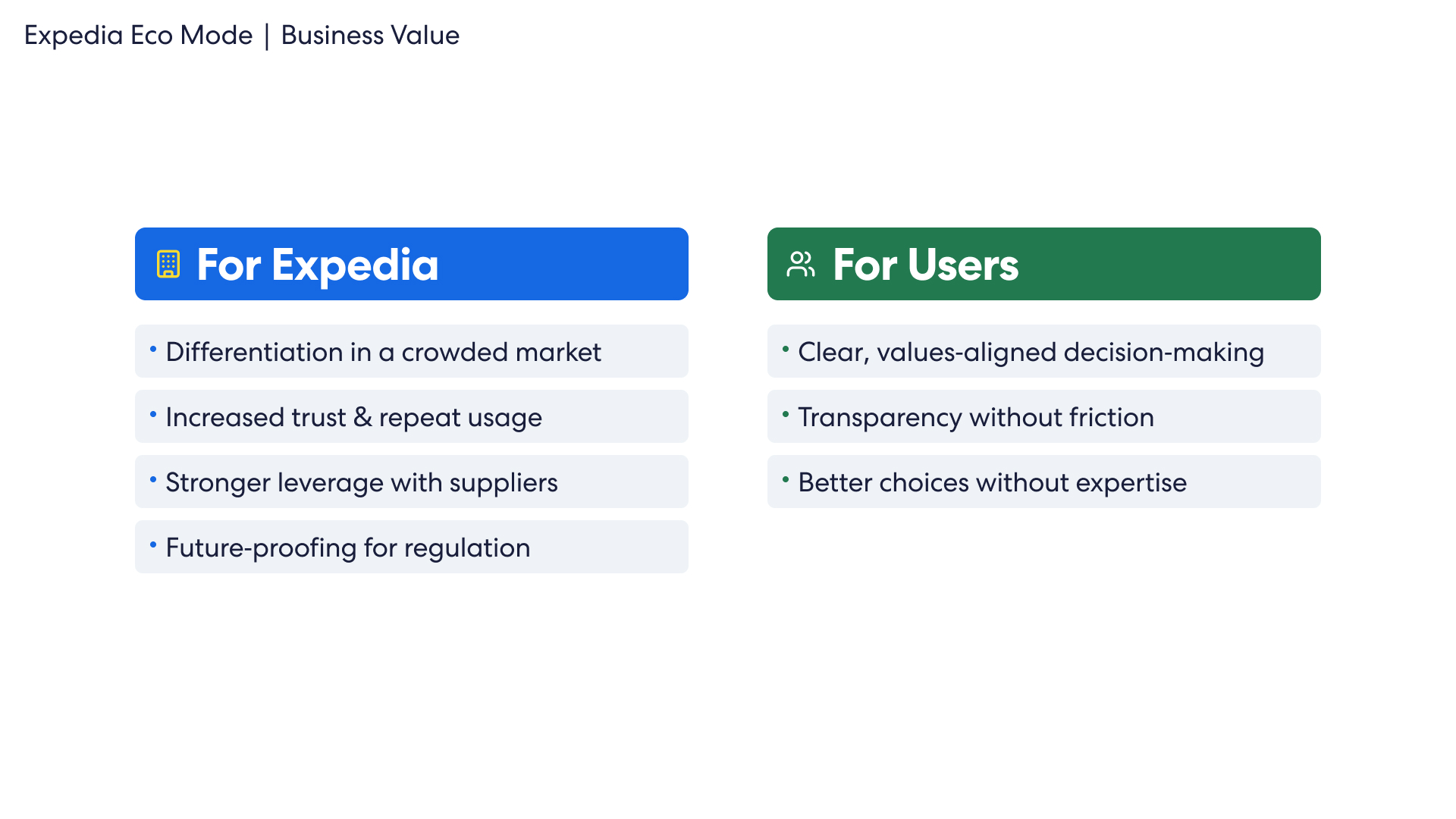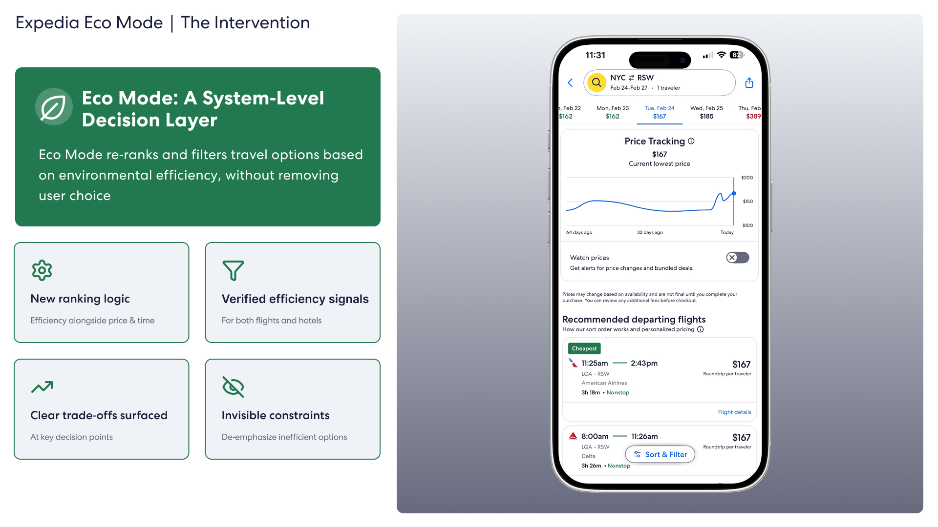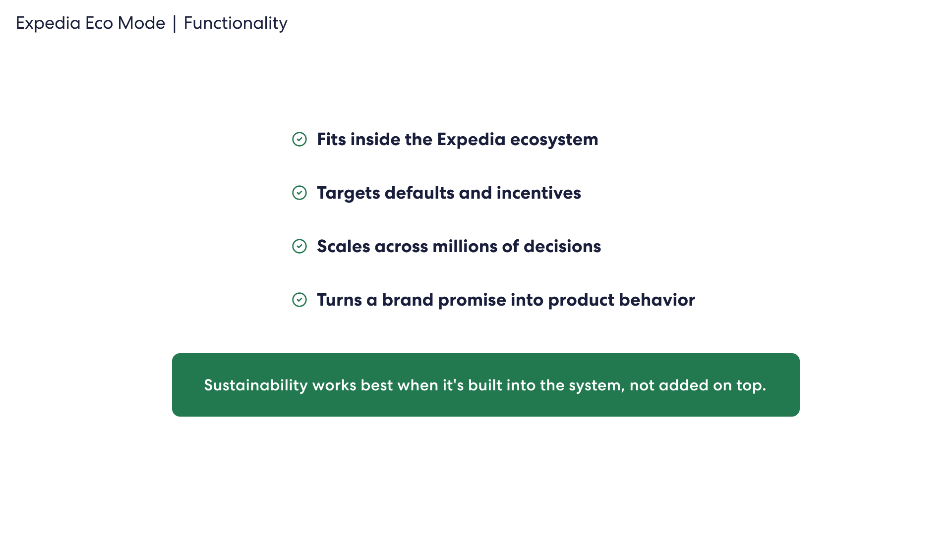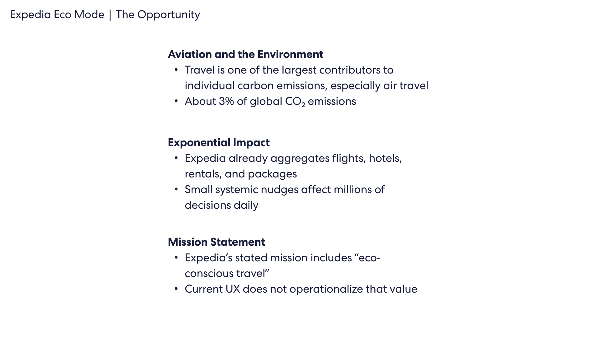 speculative feature design for expedia, focused on creating a climate-positive improvement to the service. eco mode makes climate impact visible to users when making important travel decisions.