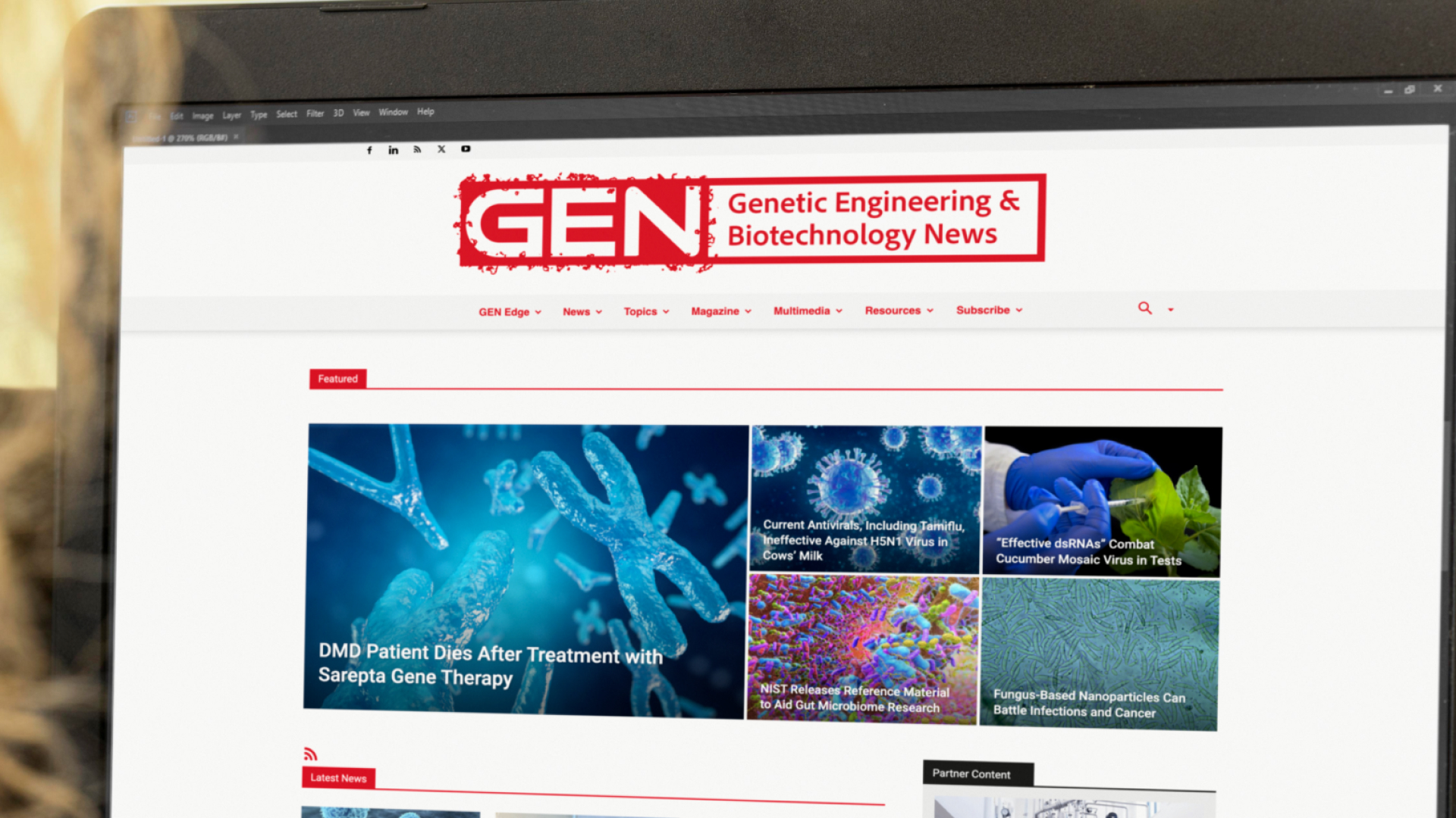 periodical logo for genetic engineering + biotech news, made with code. the logo evolves over time using an api to follow united states fda drug approvals. see the live generator.