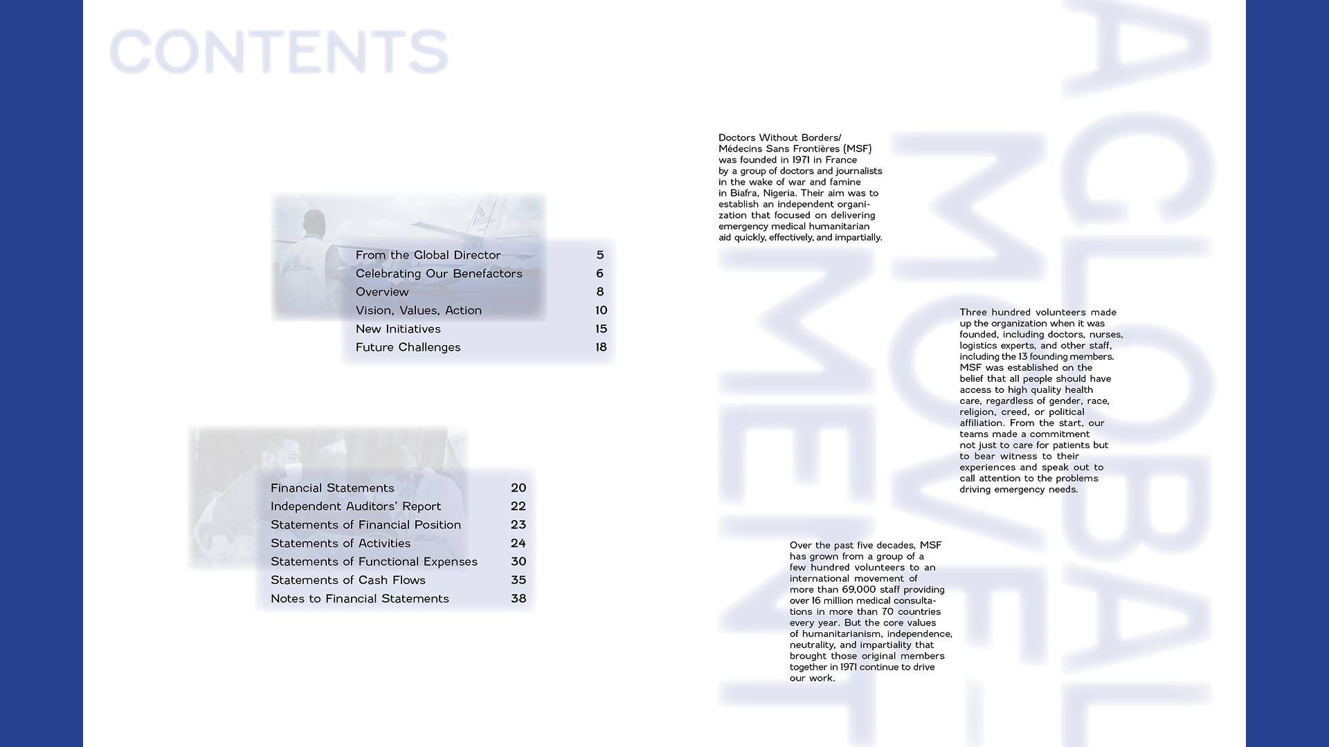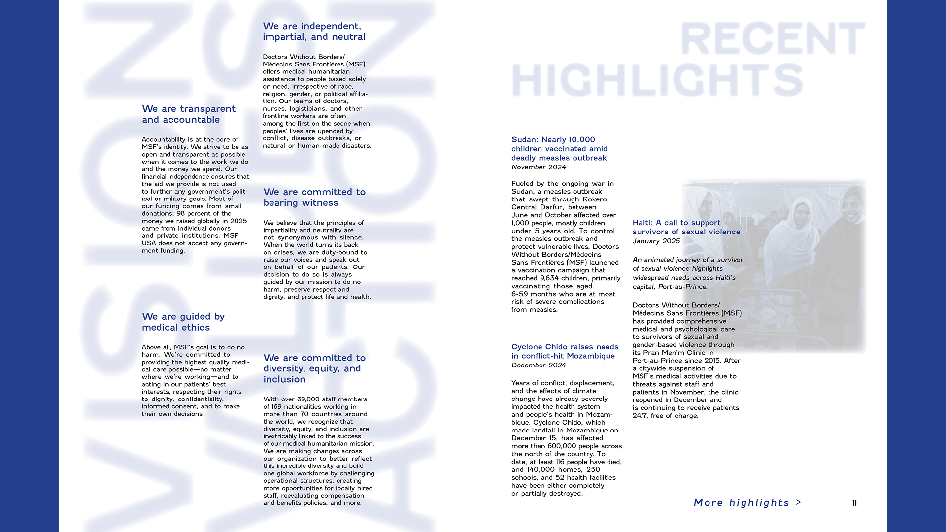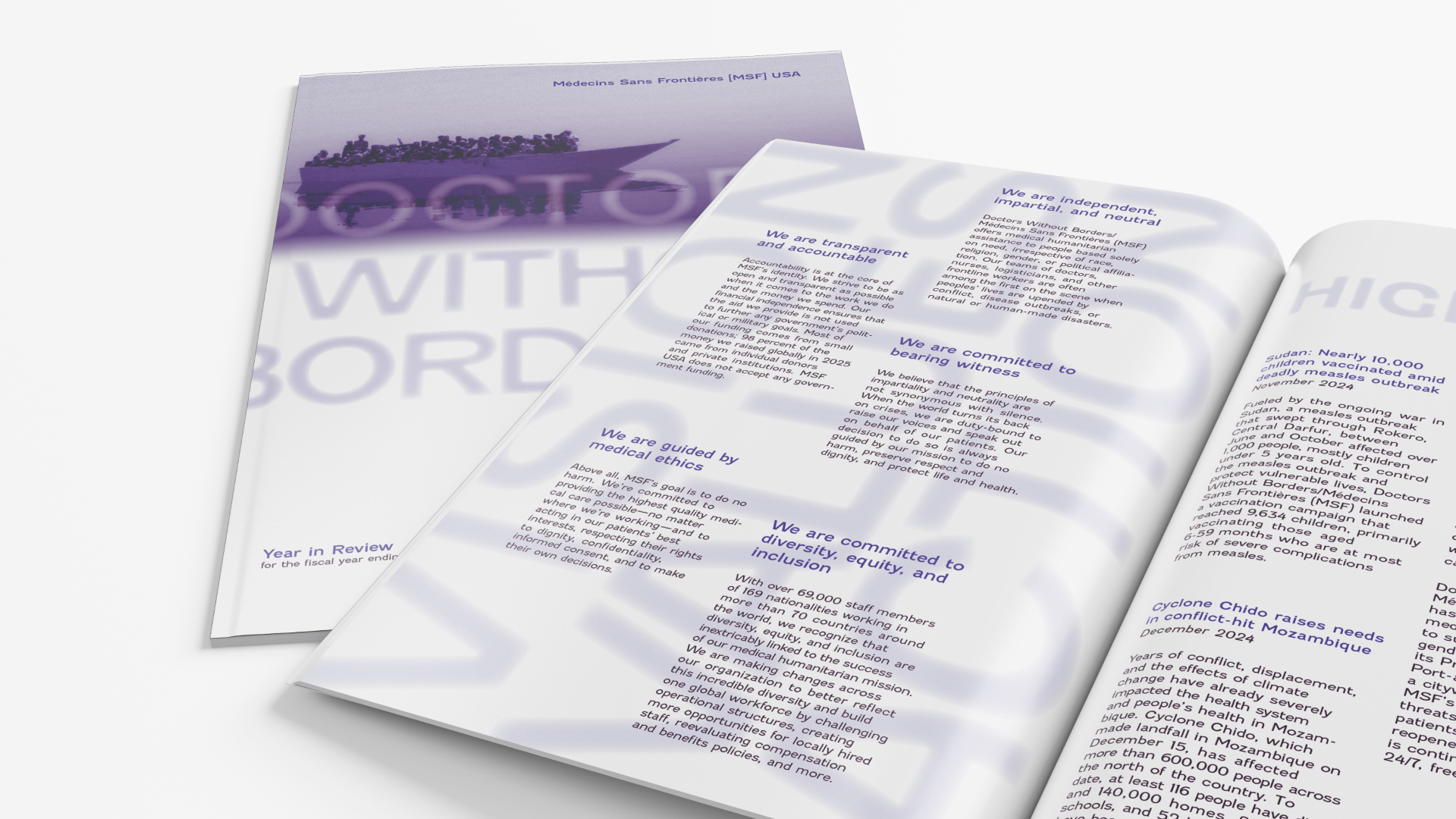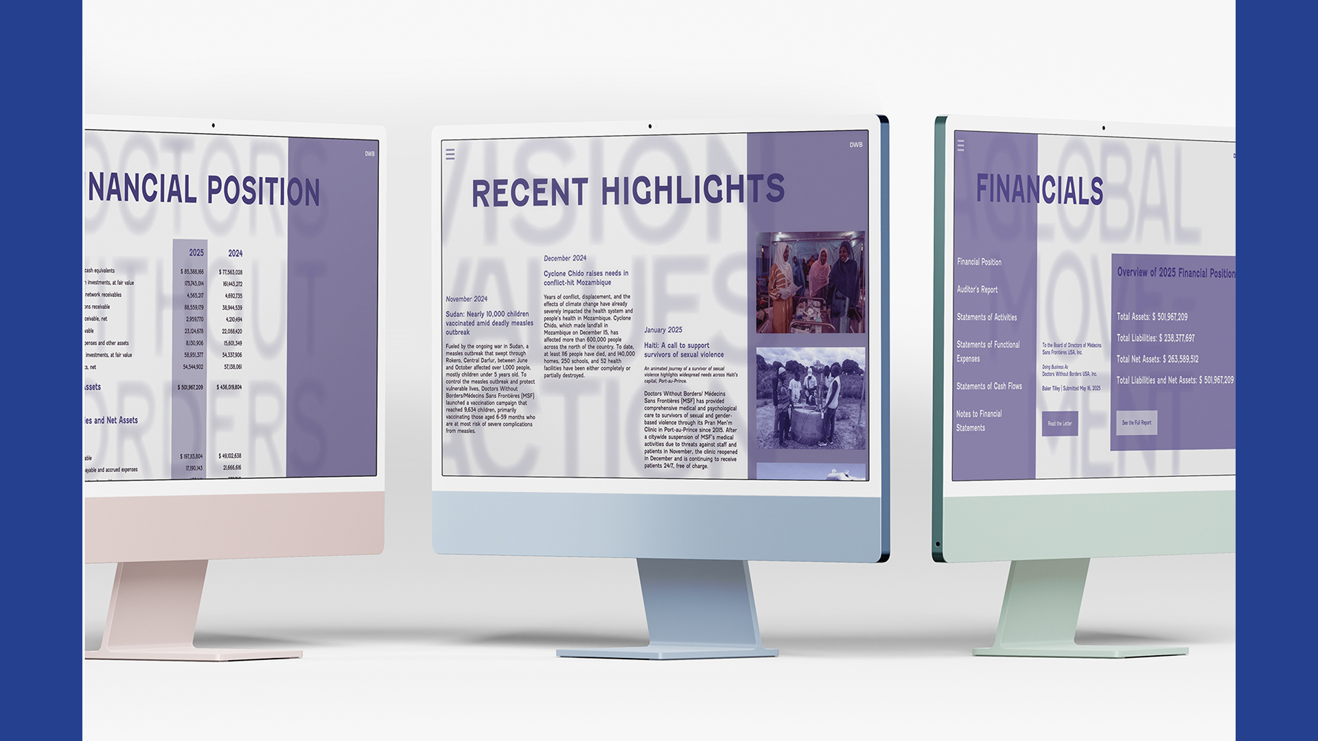 typography, web + interaction design for doctors without borders’ yearly financial reporting.